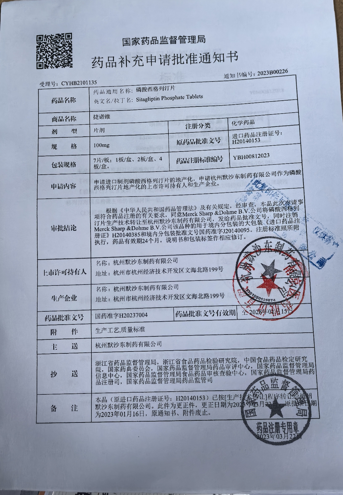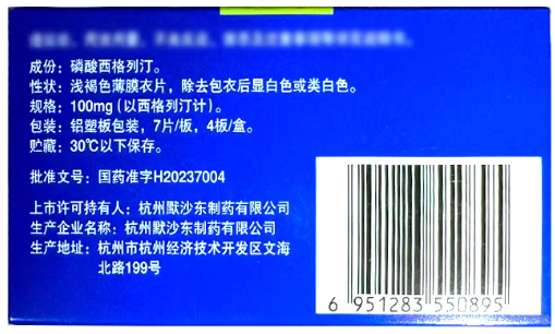 【捷诺维】磷酸西格列汀片 100mg*28片/盒